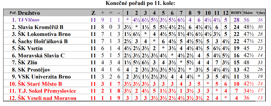 Po výrazné výhře ještě nešlo připravovat porážku postupového vepře. Kroměříž „B“ totiž dokázal těsně zvítězit se Starým Městem „B“ a udržel s Vlčnovem kontakt. Bude třeba ještě zvládnout závěrečný duel v Kroměříži.