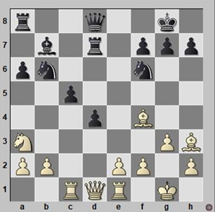 V komplikované pozici diagramu po 18. TB se soupeři dohodli na dělbě bodů. Po pravděpodobném 18…Jbd5 je velkým rizikem přijat oběť kvality 19.Sxd7 pro velmi oslabené postavení B krále, hlavně po bílých polích, kde by dominoval Sb7.