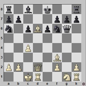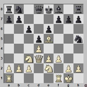 10…f6?? Pokud by se sázelo na šachové zápasy, zejména v šestimístných částkách, na takový tah by se vyšetřovatelé podvodů určitě zaměřili! Je obtížně rozumně vysvětlitelný, určitě ovlivnil průběh celého zápasu. Po běžném tahu, jako 10…Jd7, by partii čekal delší průběh a zřejmě i jiný výsledek. 11.Sxb8 Dxb8 12.g4 Sd6 13.f4 g5 14.gxh5 gxf4 15.exf4 Č ztratil čistou figuru. Jak jsem k partii nyní přišel, snad 3x jsem přepočítával lehké figury obou stran, zda mne nešálí zrak! Ještě tři tahy vydržel Č předstírat nějakou kompenzaci než v 19. tahu vzdal. Takže 1-0 pro Vlčnov.